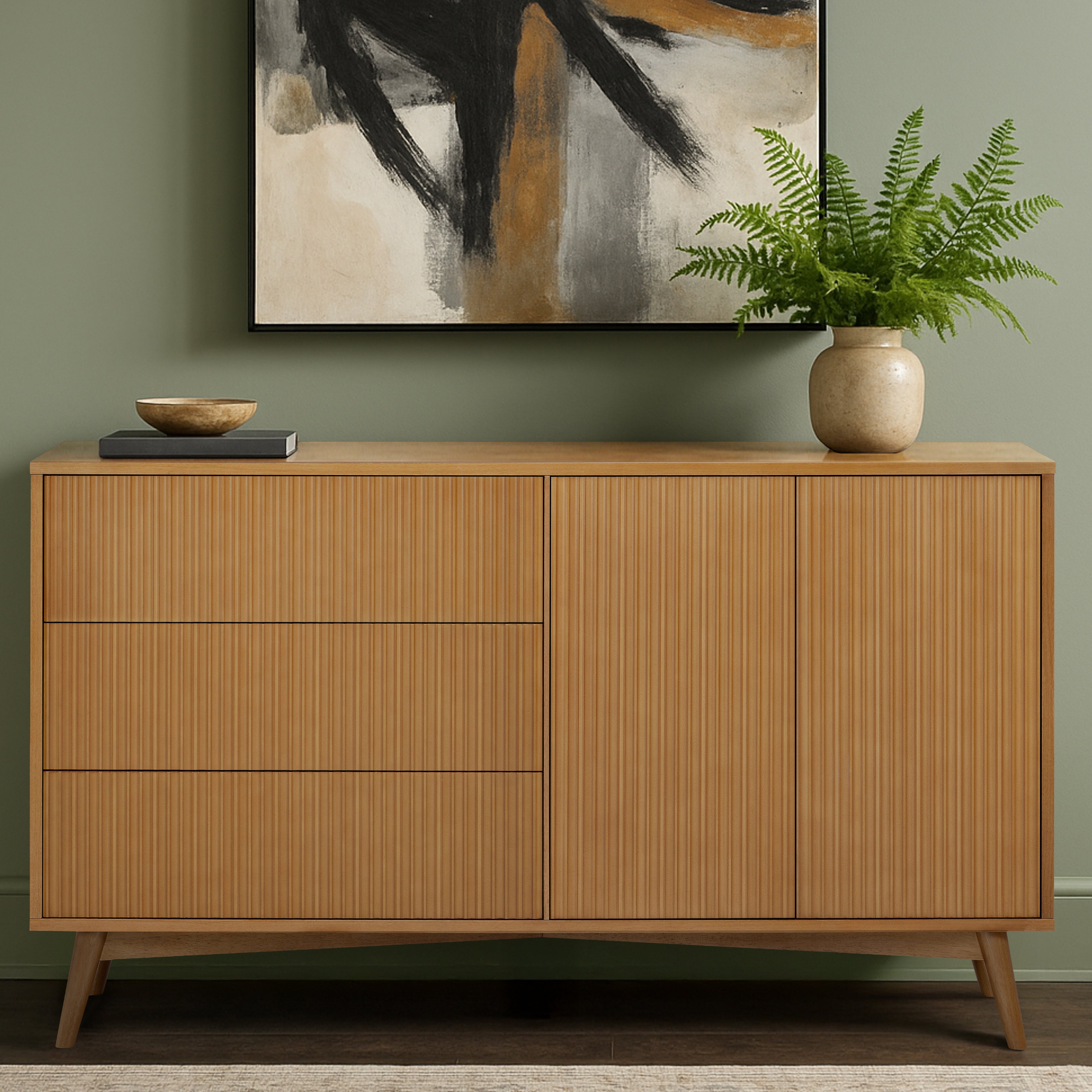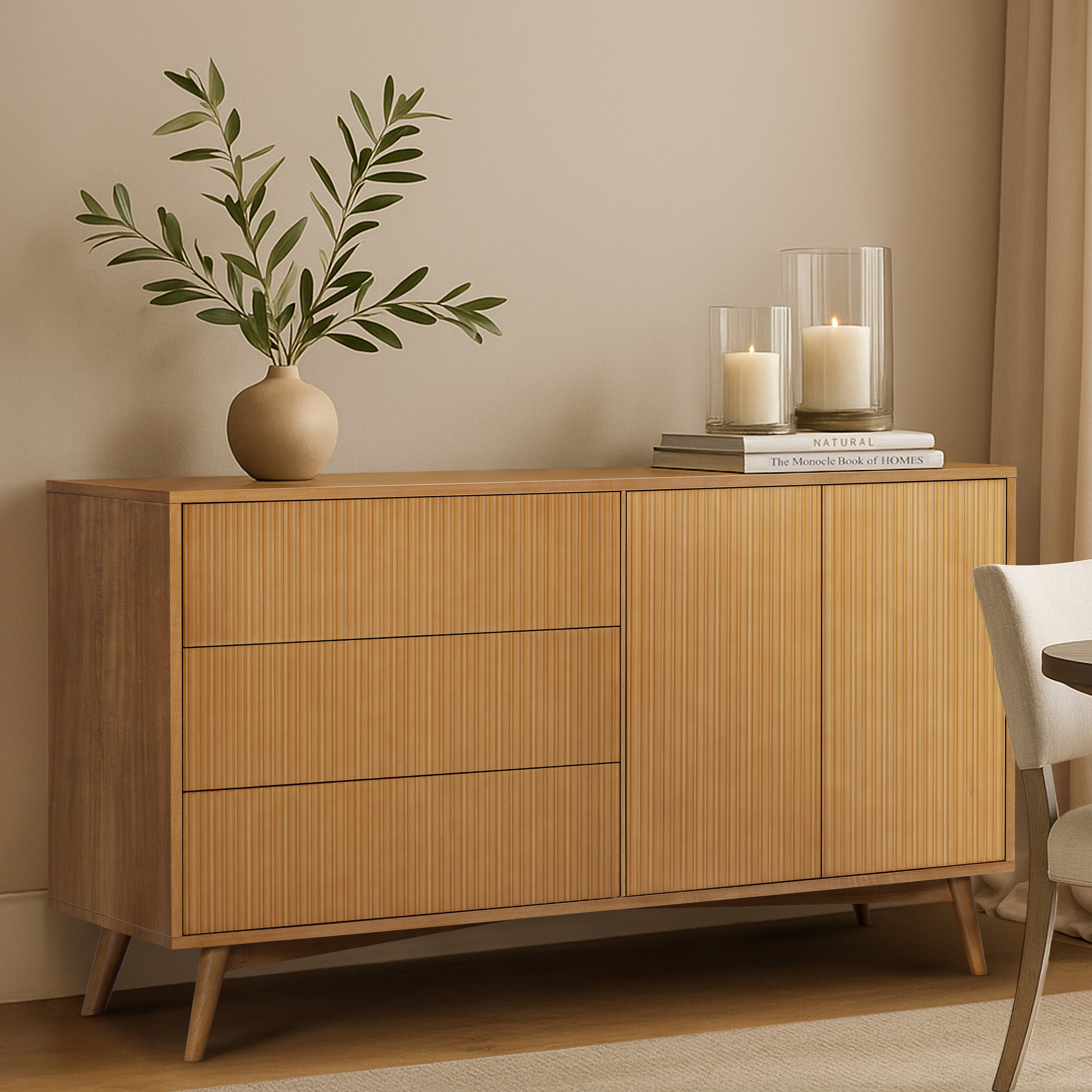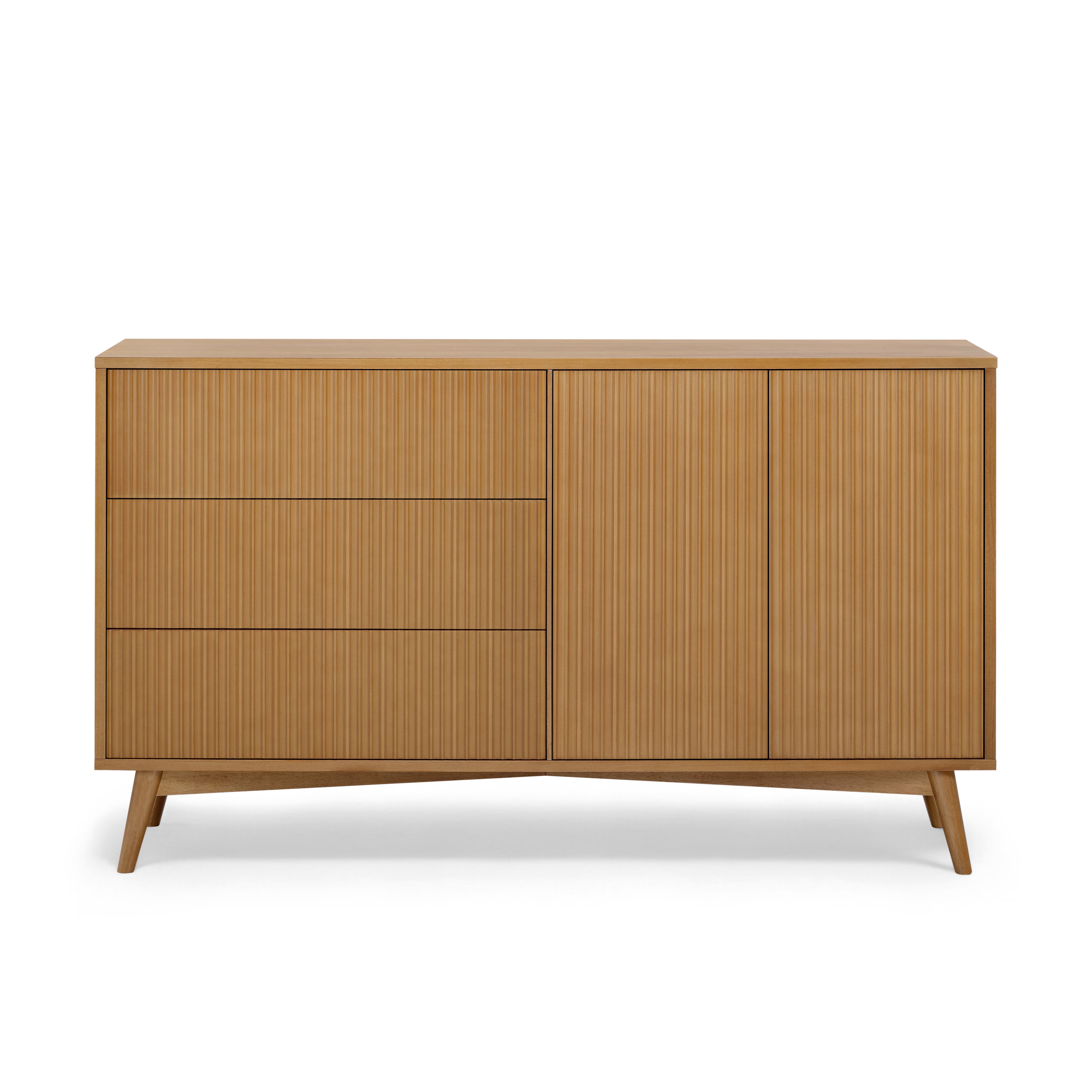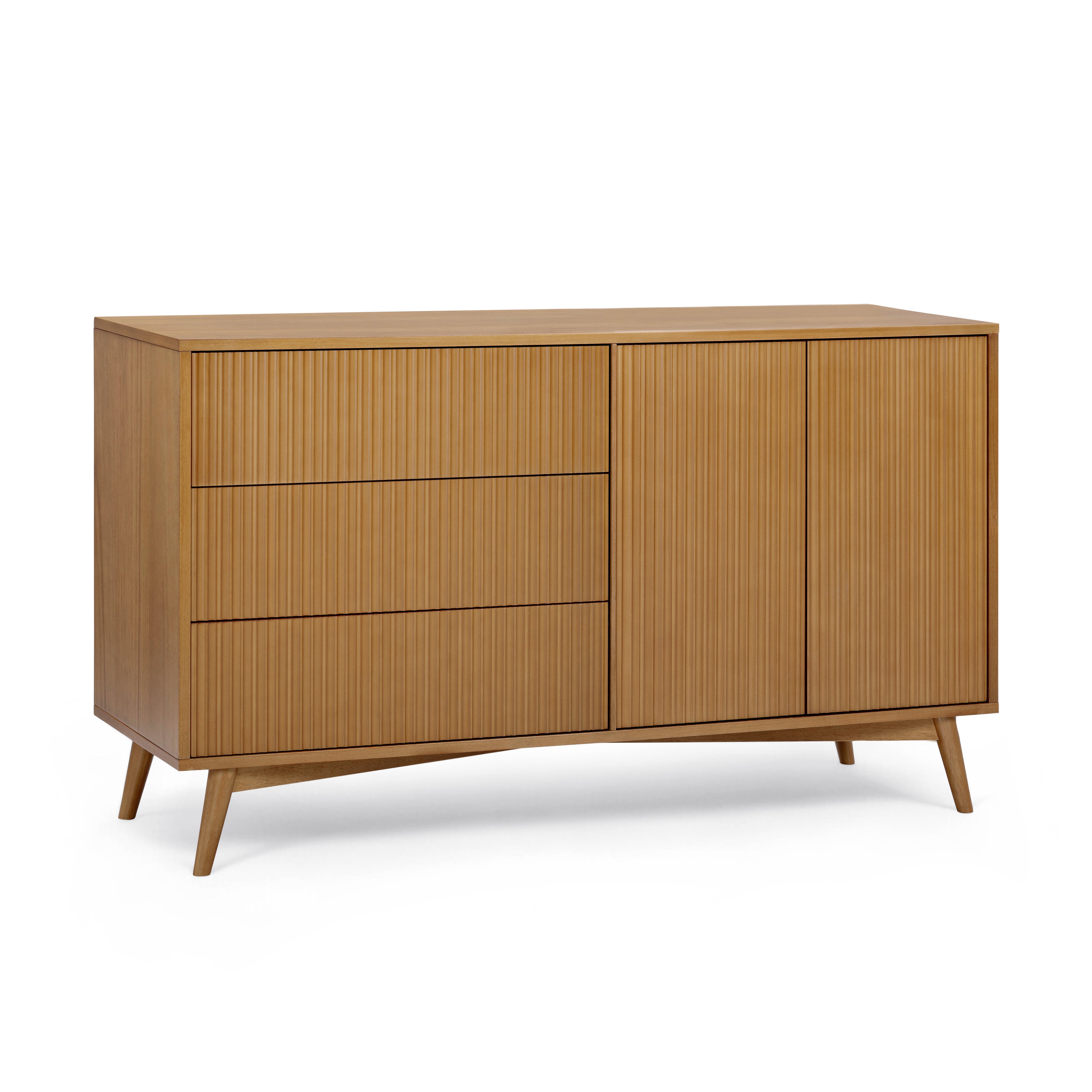 Teamson Home Tremolo Sideboard 140 cm wide with 3 Drawers Doors Fluted Fronts Natural