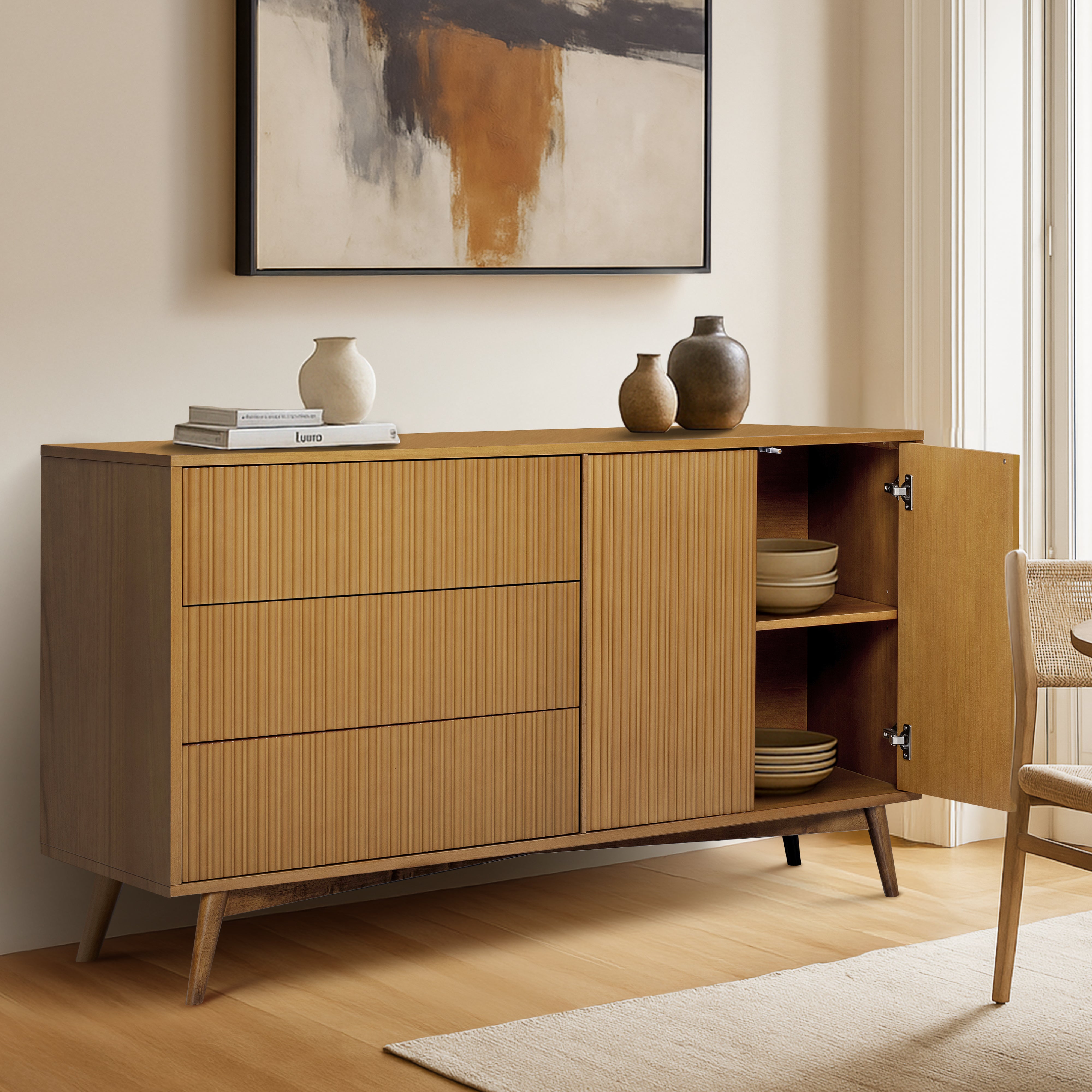 Sideboard with Mixed Storage: Three drawers and two-door cabinet provide organised space for dining, living or hallway use.